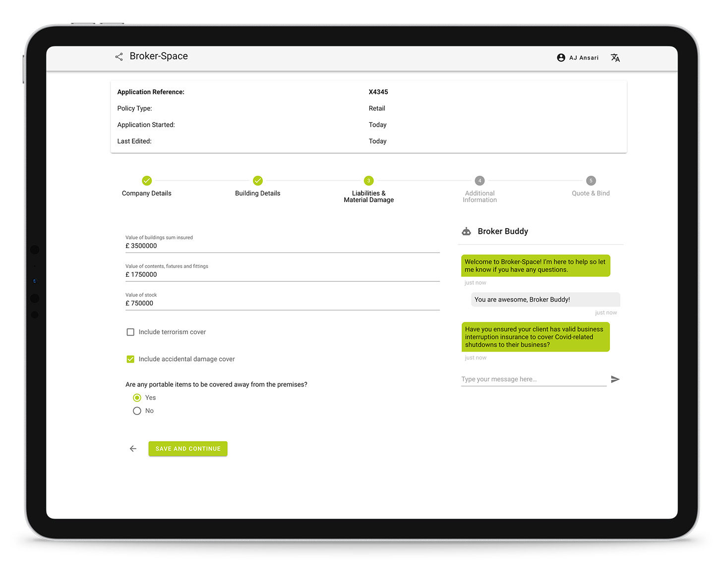 Brokers will always be at the heart of the insurance industry but current solutions force them to spend up to 75% of their working day sourcing quotes—taking them away from activities that truly create customer value. Broker-Space’s easy-to-use online platform gives brokers access to multiple quotes without the need to enter information more than once, and what’s more it’s completely free! In addition, Broker-Space’s smart form technology and Broker-Buddy—our helpful digital assistant—makes the process of searching for quotes even less of a headache.